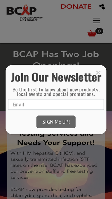 55%Boulder County AIDS Project (BCAP) offers a variety of services to people living with or at risk of contracting HIV. At BCAP, we have free HIV testing, HIV 101 education, care services for people living with HIV, and more.