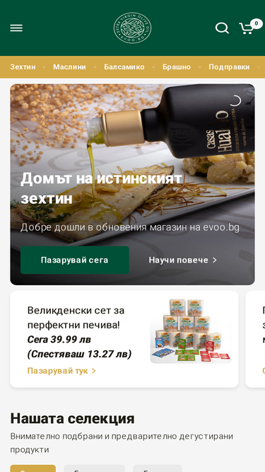 45%Премиум зехтин от Испания с доказан произход. При нас ще откриете оригинално екстра върджин маслиново масло (зехтин) от някой от най-добрите производители в Испания. Ще научите повече за различните сортове маслини и ще можете да избирате от най-доброто. Също така ще откриете интересни подправки и още други продукти.