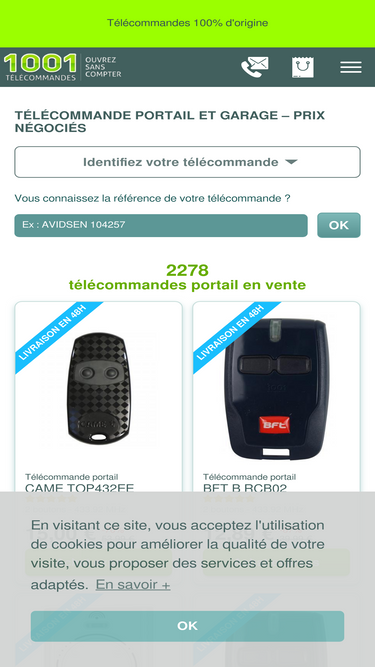 100%➤➤ Vente de Télécommandes pour Portail et Garage ✅Modèle d'Origine ✅Livraison 24h ✅Promo jusqu'à -60% ✅Garantie