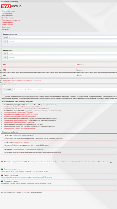 100%Для восстановления забытого пароля воспользуйтесь системой восстановления пароля. Для этого на главной странице нашего сайта https://taghosting.ru/ перейдите по ссылке «Напомнить пароль», расположенной в левой части сайта в разделе «Вход для клиентов». Введите номер договора и нажмите кнопку «Прислать пароль». После этого, письмо с текущим паролем будет отправлено на ваш контактный e-mail адрес, указанный в договоре. Важно! Если вы не помните номер договора, тогда напишите письмо в службу поддержки по адресу support@taghosting.ru , с контактного e-mail адреса, указав имя вашего сайта.