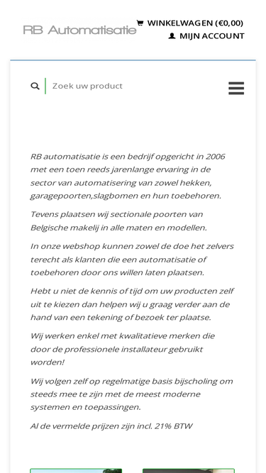 100%Bij ons vind u alle mogelijke systemen om uw woning te automatiseren zoals hekopeners, garagepoortopeners, zenders, ontvangers, videofonie, codeklavieren, gsm modules, slagbomen en noodstroomvoedingen