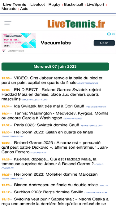 91%Livescore en direct de tennis, tournois ATP, tournois WTA, grand chelem, Coupe Davis, Fed Cup, Roland Garros, Wimbledon, US Open, Melbourne etc...