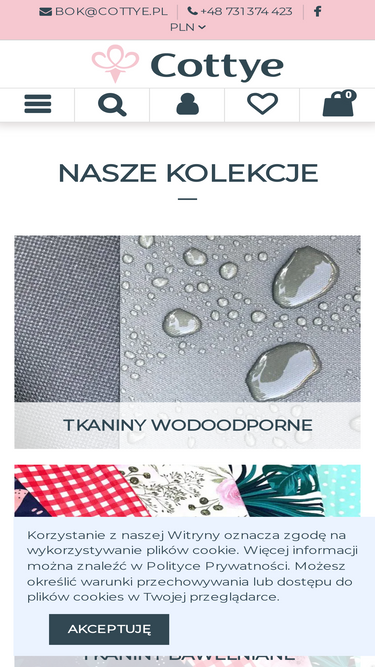 83%Hurtownia tkanin Cottye. Nasz sklep z tkaninami posiada w ofercie tkaniny bawełniane oraz tkaniny wodoodporne – duży wybór motywów i kolorów, a także tkaninę Minky i produkty pasmanteryjne - akcesoria do szycia.