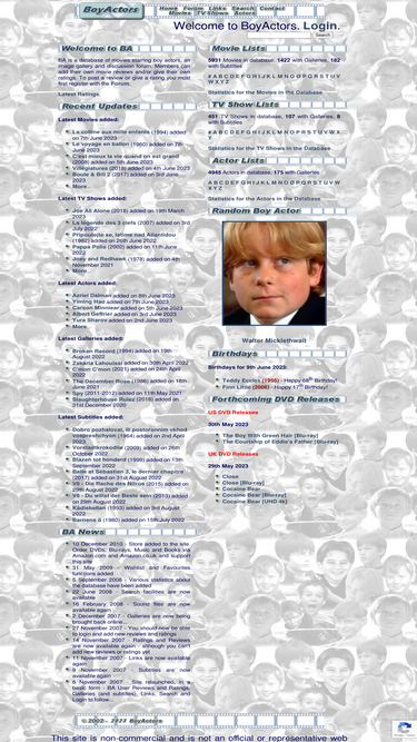 75%main page boyactors with movie, tv show and actor links, random boy actor, birthdays, site news and updates, and forthcoming dvd releases