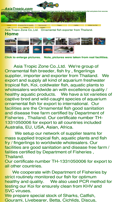 100%tropical fish, koi, goldfish, betta, aquatic plants, sea bass , barramundi ,tilapia , fry , fingerlings , import and export from thailand.