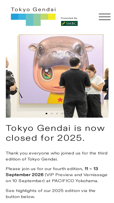 About Tokyo Gendai Launched in 2023, Tokyo Gendai is an international art fair and meeting place for the global art scene. Bringing together exceptional galleries from around the globe to one of the most dynamic and active art and design scenes in the world, Tokyo Gendai serves as a dynamic platform for commercial, artistic and […]