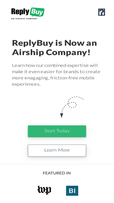 replybuy is now an airship company!learn how our combined expertise will make it even easier for brands to create more enagaging, friction-free mobile experiences. learn more start today watch video start today learn more featured intechcrunchyahoo!business insiderwashington postwall street journalfeatured intechcrunchyahoo!business insiderwashington postwall street journalperfect for sales, support, and marketing teams cut through the noise. … continue reading "home"