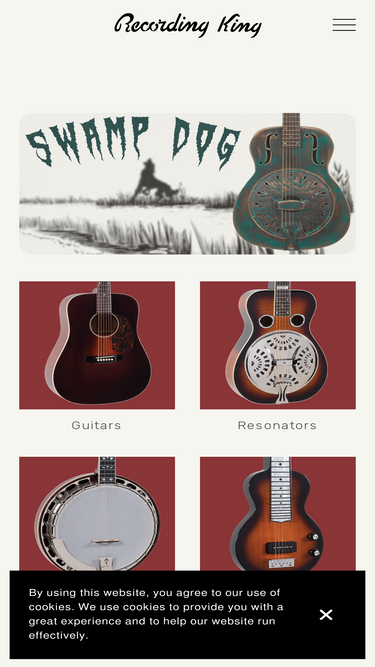 Beginning as a house brand in the 1930’s for Montgomery Ward, Recording King acoustic guitars and banjos were developed during the Golden Age of musical craftsmanship. Building on this piece of American history, our Recording King instruments uphold the name's historic legacy using vintage designs a