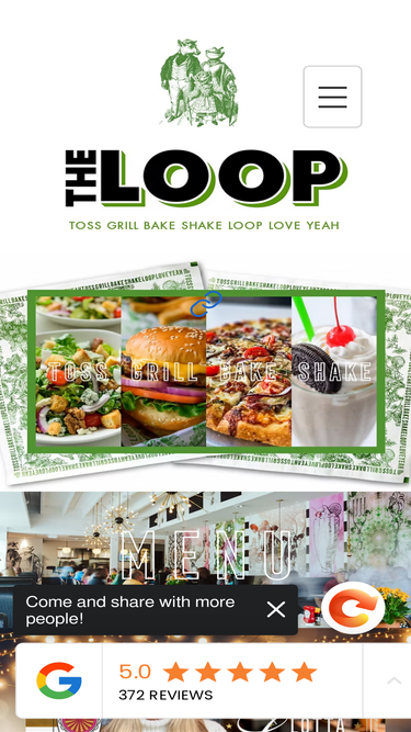 83%Since 1981, The Loop has served America’s favorites—fresh ground and open-fire grilled burgers, cheesy pizzas (and now pinsas), hearty salads and creamy shakes. A warm community gathering place, we have something for everyone, always served with a whole 'lotta love. Located in Jacksonville, Amelia Island, Fleming Island, Ponte Vedra, Nocatee, & Orange Park, Florida. And Durham, Chapel Hill, Kernersville, Winston-Salem, NC.