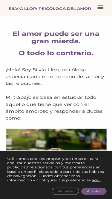 85%Soy Silvia Llop, Psicóloga del Amor, y voy a ayudarte a comprender tu vida amorosa y encontrar a esa persona con quien puedas compartir tu vida.