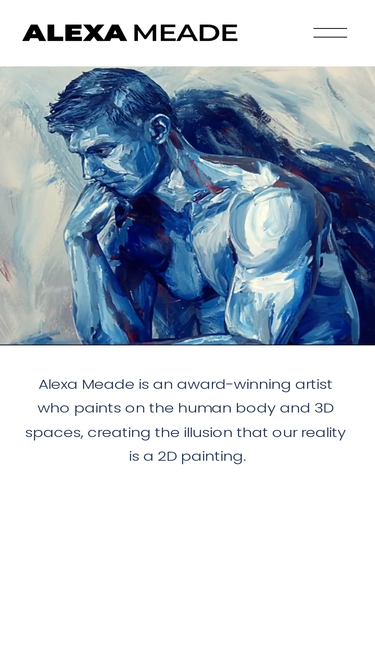 80%Alexa Meade has been Artist-in-Residence at the World Trade Center, Google, and the Perimeter Institute for Theoretical Physics. She has collaborated with the family of Frida Kahlo and magicians David Blaine and Zach King. She painted on the body of pop star Ariana Grande for her “God is a Woman” mu