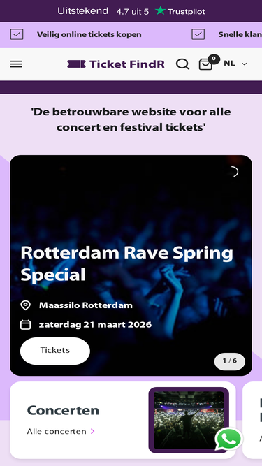 Op zoek naar online tickets voor festivals, concerten of evenementen? Bij Ticket FindR kun je tickets veilig kopen voor redelijke prijzen. Zo leveren we onder andere tickets voor evenementen in de Ziggo Dome, AFAS Live, Paradiso, Johan Cruijff Arena, en Tivoli Vredenburg. Bekijk nu ons volledige ticketaanbod online.