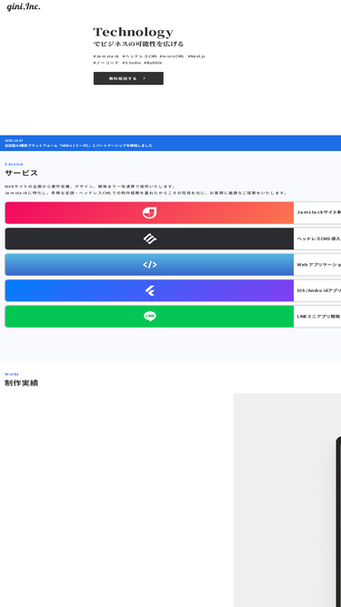 79%gini(ジニ)は、大阪を拠点とするWeb制作・システム開発会社です。「高速・安全・低コスト」を実現するJamstack制作・開発を得意とし、コーポレートサイト、採用サイト、オウンドメディア、EC、Webサービス、iOS/Androidアプリ開発などのサービスを提供しています。