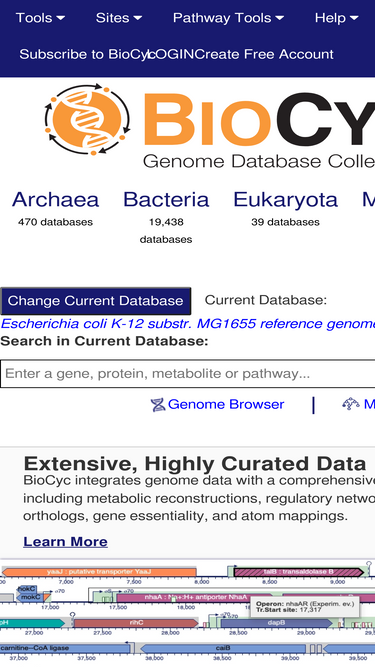 83%biocyc integrates sequenced genomes with predicted metabolic pathways for thousands of organisms, mostly microbial, and provides extensive bioinformatics tools.