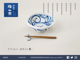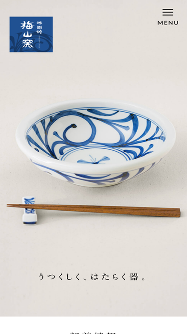 100%梅山窯は、砥部で現存する中で最も歴史のある砥部焼の窯元です。砥部の材質を生かして「用と美」をコンセプトに実用工芸品の製作につとめています。あたたかみのある白磁の器に深い藍色と色絵で描かれた文様と、ぽってりと厚みのある形で作られている梅山窯の器は、飾り気のない健全な美しさを感じられます。