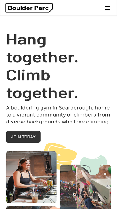 94%Boulder Parc, Scarborough's very first boutique climbing gym that focuses on bouldering located near Toronto. We offer personal training, small group training, workout area, inspiring space, expert coaches, supportive community, youth programs, competition training, cafe, working space, lounge. Our membership includes day pass, 10 passes, monthly membership, annual membership.