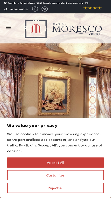 100%Tipologia: Classic Stile veneziano, design moderno e tecnologia si combinano armoniosamente rendendo le nostre camere Classic particolarmente accoglienti. I pavimenti, in parquet di rovere o terrazzo veneziano, si sposano con le eleganti forme dell’arredamento. Alcune delle nostre camere Classic offrono una splendida vista su un tipico canale veneziano, altre si affacciano sul nostro giardino, vanto...