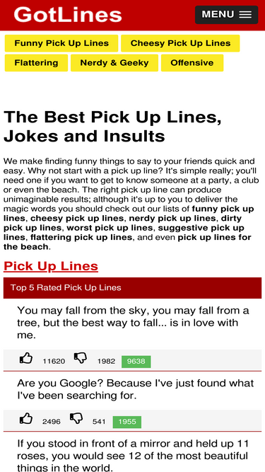 our goal is to make finding funny things to say quick and easy. we started with funny pick up lines, then added funny jokes and insults to make things a bit more fun.