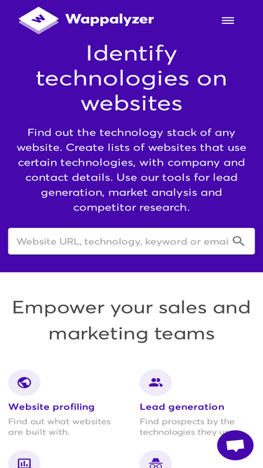 100%find out the technology stack of any website. create lists of websites and contacts by the technologies they use.
