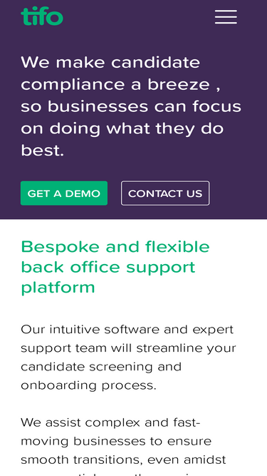 95%We make candidate compliance a breeze, so businesses can focus on doing what they do best. Get A DemoContact Us Bespoke and flexible back office support platform Our intuitive software and expert support team will streamline your candidate screening and onboarding process. We assist complex and fast-moving businesses to ensure smooth transitions, even amidst exponential… Continue reading Tifo: Complete Candidate Screening