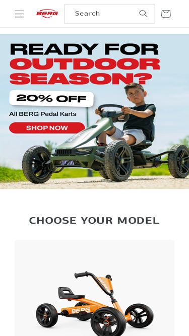 90%Berg Reppy GET READY TO EXPLORE Even children like to get behind the wheel. Children know what they like. With the Rally, there’s something to choose from. Tough or fast and in numerous colors. Whichever Rally go-kart you choose, all of them ride fast and comfortably on pneumatic tires. They also grow with you, so you can enjoy them for years to come!