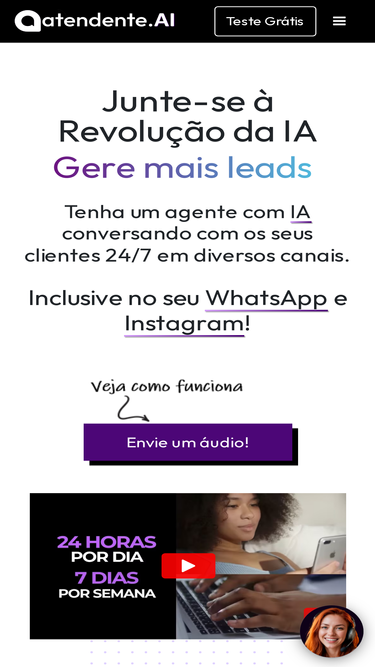 100%atendente.ai é uma plataforma para vendas e atendimento que adiciona ia ao trabalho do seu time de pessoas. crie a sua própria ia utilizando tecnologia de última geração, responda dúvidas dos seus clientes ou colaboradores de forma automática e como se fosse uma pessoa respondendo. e ainda, o seu time e a sua ia atendem seus clientes em diversos canais de conversação - inclusive no seu whatsapp. tudo centralizado e com total segurança.