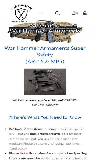 80%Welcome to War Hammer Armaments - Engineering Firearms Perfection - The WHA Super Safety is now IN STOCK!