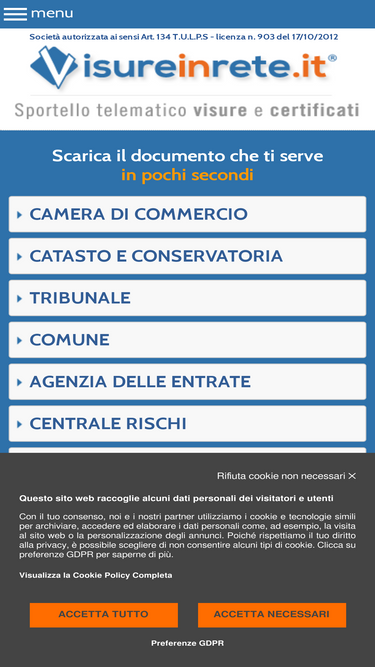 96%su visureinrete ottieni on line la visura che ti serve. puoi consultare camera di commercio, catasto conservatoria e p.r.a per scaricare visure e certificati ovunque tu sia.