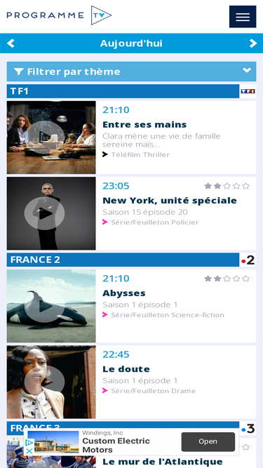 97%La séléction des TV à regarder en direct sur votre ordinateur, tablette ou smartphone.