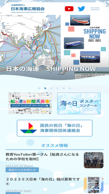 94%(公)日本海事広報協会のホームページです。「海の日」や海運・造船などの海事産業、マリンレジャーや海洋環境など海について幅広い広報活動をしています。
