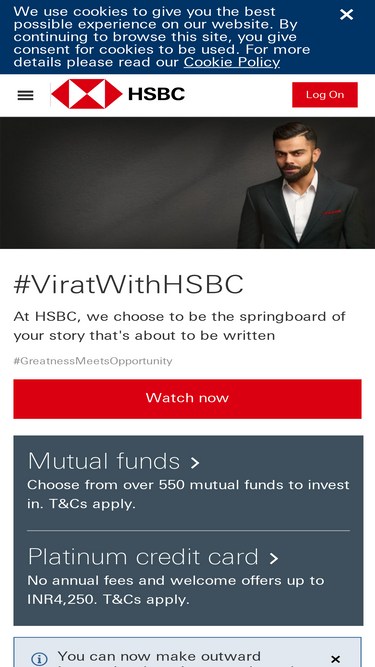 68%Get banking and financial investment services such as credit card, nri services, loans and money transfers via internet banking or mobile app at HSBC India.