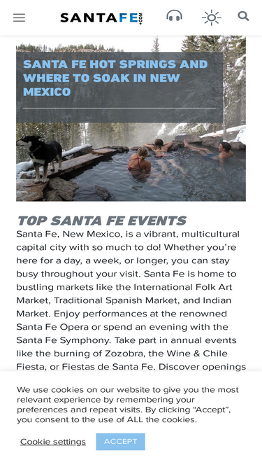 100%welcome to santafe.com, where we bring you the best of santa fe, new mexico, including events, things to do, restaurants, arts, culture, music and more.
