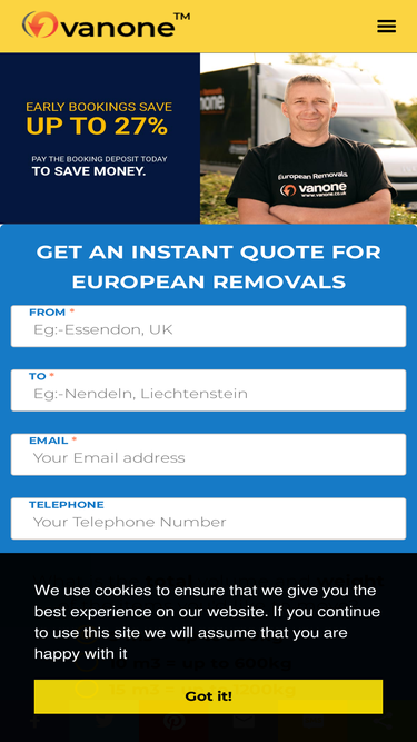 82%vanone international movers. receive instant quote for cheap and reliable european removals. daily services from the uk to the eu, norway and switzerland.