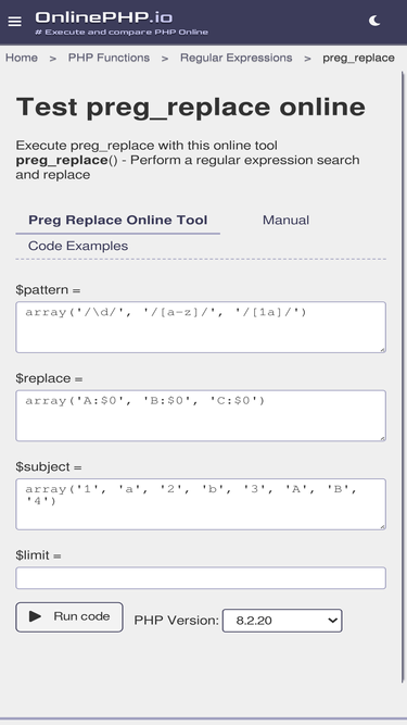 91%execute preg_replace online. test and run preg_replace in your browser. perform a regular expression search and replace