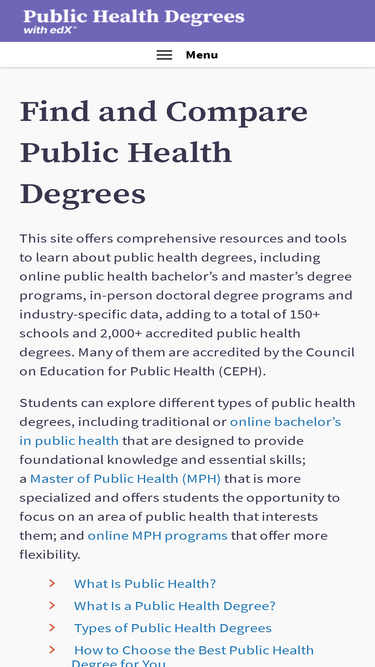 68%What is a public health degree? Check this summary of comprehensive resources and tools about public health degrees and find the public health degree right for you.