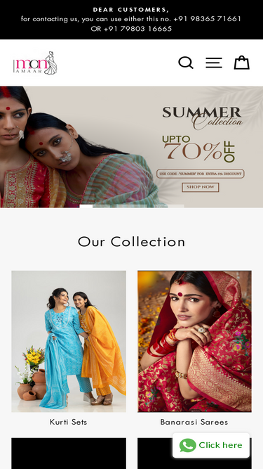 85%Monamaar is the leading online shopping destination for the latest and trendiest women's ethnic wear. The website offers the best collection of sarees, lehenga, salwar suits and much more.
