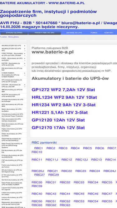 baterie akumulatory platforma b2b www.baterie-a.pl sprzedaż akumulatorów żelowych i agm do ups