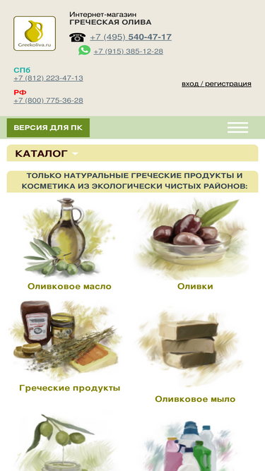 греческие продукты и косметика с быстрой доставкой по россии – отправим заказ в течение 24. заходите в наш магазин греческих продуктов греческая олива – только качественные натуральные товары, даем гарантии. тел. 8-800-775-36-28