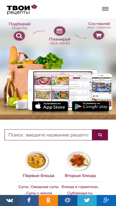 92%вкусные рецепты с подробным пошаговым описанием и фото. удобный поиск, подбор по ингредиентам, подсчет калорийности, составление меню, а также отзывы и комментарии участников.