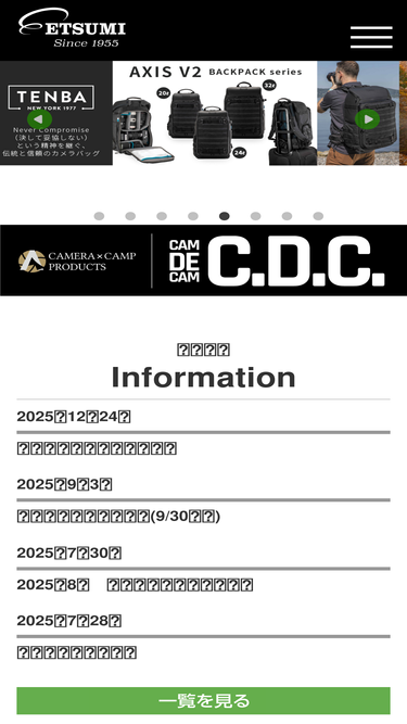 93%株式会社エツミはカメラバッグ、液晶保護フィルム、ストラップ、三脚、ブラケットなどフォトアクセサリーを総合的に扱う写真用品メーカーです。自社製品、国内外ブランドの製品情報、企業情報をご覧いただけます。