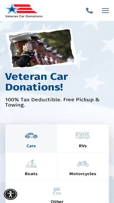 74%At Veteran Car Donations, we turn your vehicle into resources for veterans. Learn about the process here or call us today, at 877-594-5822.