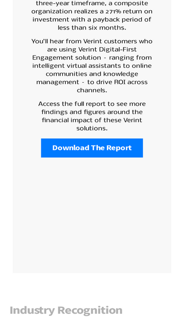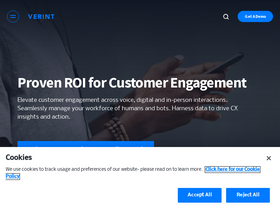 100%The customer engagement company. Verint helps the world’s most iconic brands build enduring customer relationships by connecting work, data, and experiences across the enterprise.