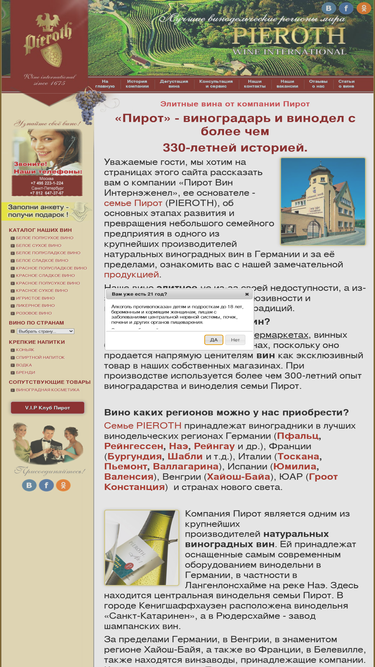 элитные вина от компании пирот нельзя купить в гипермаркетах, винных бутиках, попробовать в ресторанах, поскольку оно продается напрямую ценителям вин как эксклюзивный товар.
