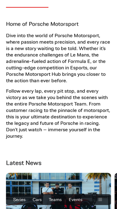 68%Race series, stories, facts and news at a glance. Discover the Porsche Motorsport Hub now.