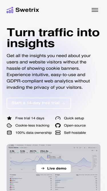 Visualizza metriche del sito web, keyword, i principali canali di marketing, strumenti di ricerca di mercato e altro ancora.