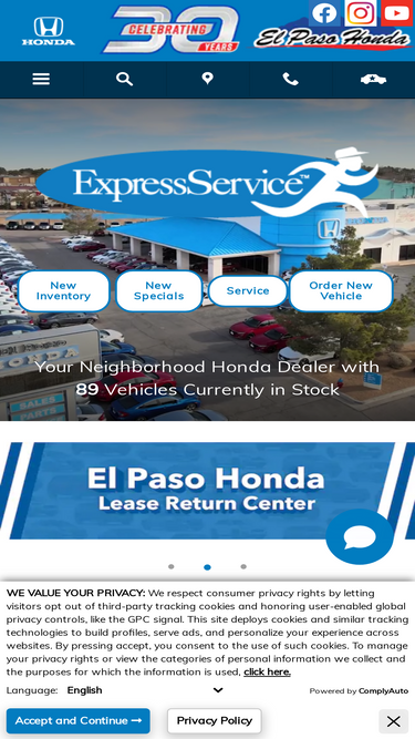87%visit us and test drive a new or used honda at el paso honda. we serve the socorro tx, las cruces nm, mesquite nm and fort bliss areas.
