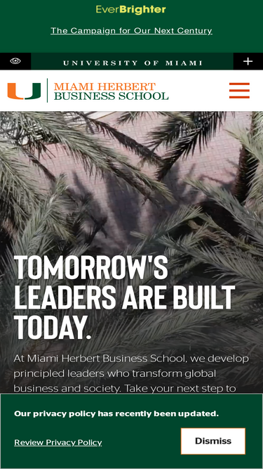 73%Miami Herbert Business School is a leading business school, offering undergraduate business, Full-Time MBA, Executive MBA, MS, Ph.D., and non-degree Executive Education programs. One of 12 colleges and schools at the University of Miami, the school is located in a major hub of international trade and commerce and acclaimed for the global orientation and diversity of its faculty, students, and curriculum.