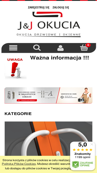 88%w ofercie klamki oraz akcesoria do drzwi i mebli