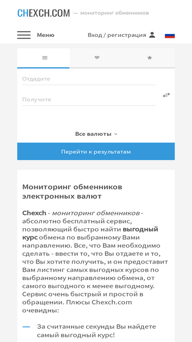 79%Chexch - мониторинг обменников ♻️, который содержит в себе всегда актуальную информацию о более выгодных и лучших обменных пунктах. С ⭐Chexch⭐ Вы всегда можете быть уверены в том, что обменяете свои деньги по самому выгодному курсу