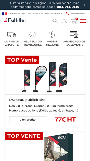 Imprimerie en ligne pas cher. Avec Fulfiller, imprimez vos supports de communication petits et grands formats. Livraison gratuite et rapide. Satisfaction garantie.